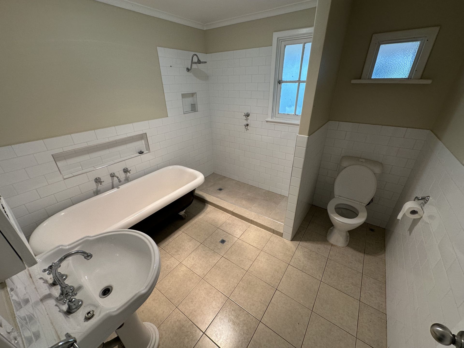 Massive bathroom with separate claw bath.