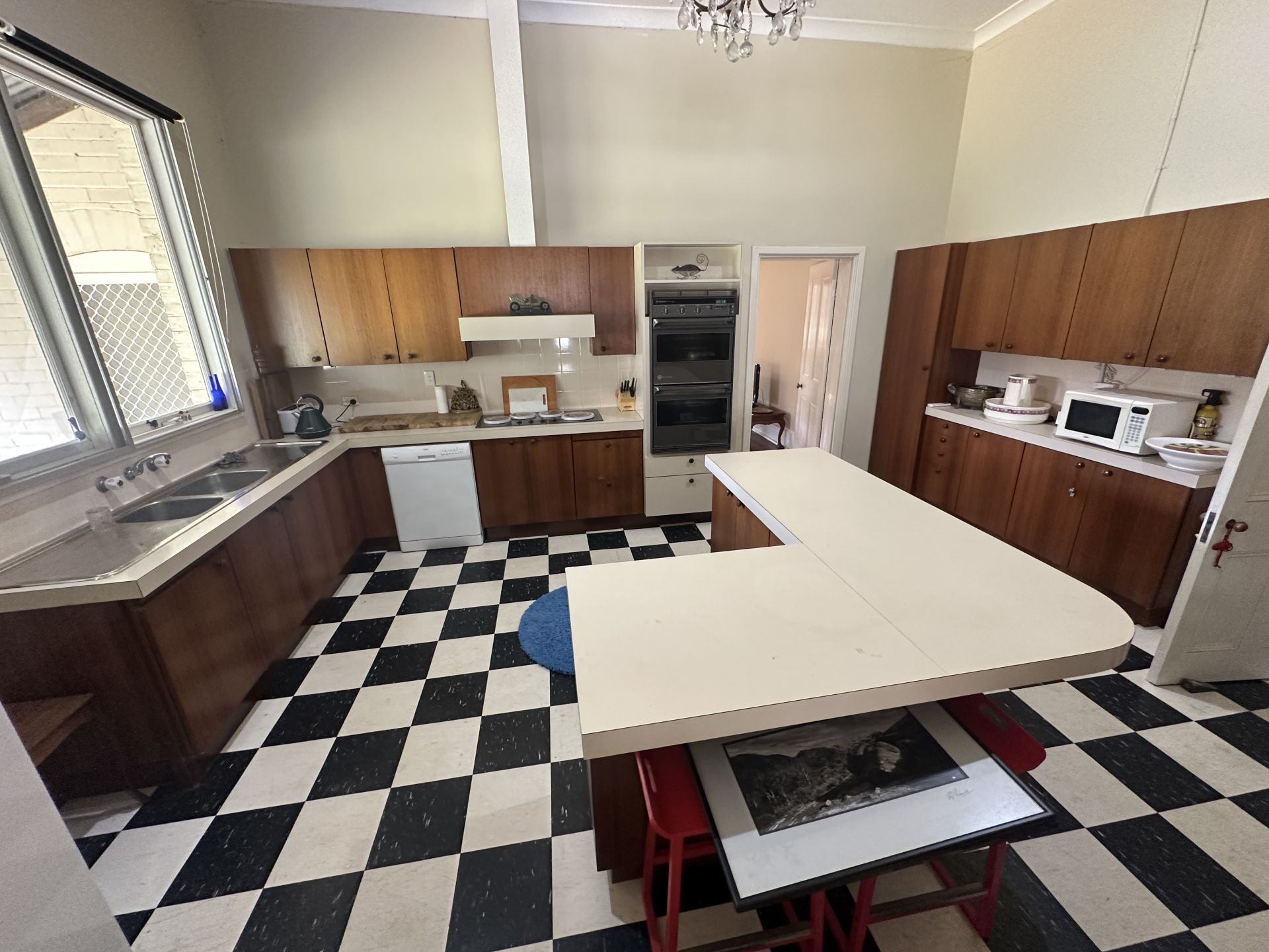 Huge country kitchen overlooking paddocks.